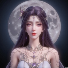zichu-tms-yx, 1girl, solo, long hair, hair ornament, dress, bust, moon, sea of ​​flowers, flowers, forest, tree, butterfly, character light