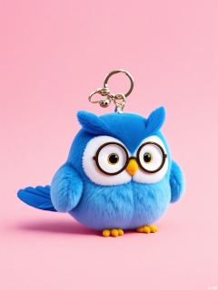 WOGJ, Image of a pastel-blue owl keychain with fluffy feathers, big round glasses, and a wise expression. The owl perches on a tiny branch charm, with a cream-colored background emphasizing its cozy, bookish vibe.
