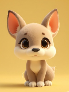 DWXX, A lifelike CGI of a fawn with speckled fur, liquid-brown eyes, and a delicate snout. It stands alert, ears twitching, on a golden-yellow background. Soft lighting highlights its youthful curiosity.