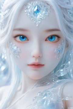 Masterpiece, high quality, 1girl, extreme detailed, (fractal art:1.3), (colorful colors), highest detailed, (******ese idol), sexy, (glowing ice in eyes:1.2), huge breasts, (a girl made of ice:1.6), (ice surrounds her), translucent luminous body, 8k, (upper thighs shot:1.2), front view,