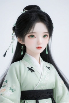 1girl,full body,hanfu, ming style outfits, Light green short coat, overlapping collar, black mamian skirt,,beautiful detailed eyes,(((full body))),(duobaca),(((Pure white background))),Black Hair,standing,look at viewer,arms at sides,