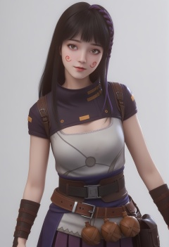 (score_9),vivid colours,Expressiveh,ambient occlusion,((Subsurface Scattering)),light blush,body_blush,<lora:夏豆-Apony-000009:0.85>,xiadou,1girl,solo,facepaint,long hair,black hair,braid,purple braid,popped collar,sleeveless topwear,belt,bracer,calabash kettle,pleated skirt,pouch,looking at viewer,front view,<lora:perfect-eyes:0.83>,brown eyes,pupils,bright_pupils,iris,black sclera,<lora:a修手:0.3>,*****,mature,(mature_female:1.3),glamor,skinny,collarbone,puffy breasts,pointy_breasts,large breasts,simple background,white background,OverallDetail,fair_skin,(white_skin),(Ivory_skin),<lora:e色温:1>,<lora:e肤色滑块:1>,<lora:Expressive_H:1>,<lora:SkinRealityOrg_ponyv6_loraplus:0.25>,real skin,