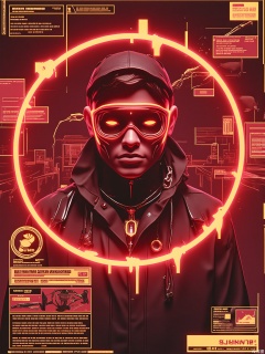 SBPK, A weathered detective with augmented reality visor cracks through a blood-red interface. The noir-inspired backdrop shows floating case files and 3D crime scene reconstructions.