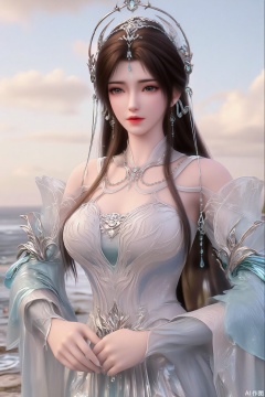 (masterpiece:1.2),best quality,3D animation,CG,absurdres,masterpiece,original,extremely detailed wallpaper,perfect lighting,(extremely detailed CG:1.2),1girl,solo,standing,(huge breasts:2.69),(full breasts:2.59),,looking at viewer,(cowboy_shot:1.1),long hair,high heels,blurry background,depth of field,motion blur,long dress,china_dress,chinese_style,bare shouders,crystal_earrings,headpiece,hair_tie,chest_jewel,gem,necklace,jewelry,in summer,day,outdoors,nature,sea,(rose,beach:1.49),(huge breasts:2.99),(full breasts:2.99),(very long legs,Diamond-studded high heels:1.5),XcaiyunK,XlimuwanJCB,Xjiningshuang,XjiningshuangX2,XzixinK,XliushenWDDk,XtingerY,XbaiyuekuiXY
