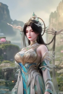 (masterpiece:1.2),best quality,absurdres,masterpiece,original,extremely detailed wallpaper,perfect lighting,(extremely detailed CG:1.2),1girl,solo,standing,looking at viewer,(cowboy_shot:1.3),black hair,long hair,high heels,blurry background,depth of field,motion blur,short dress,china_dress,chinese_style,bare shouders,crystal_earrings,headpiece,hair_tie,chest_jewel,gem,necklace,jewelry,in summer,day,outdoors,nature,sea,(beach:1.4),(huge breasts:2.99),(full breasts:2.99),(lotus pond and pink lotus flowers:1.59),,(very long legs,Diamond-studded high heels:1.5),XcaiyunK,XlimuwanJCB,Xjiningshuang,XjiningshuangX2,XzixinK,XliushenWDDk,XtingerY,XbaiyuekuiXY,XqingyiXYK,COLORFUL CHAOS CRACKS AND DROPS,RAINBOW GLOW.