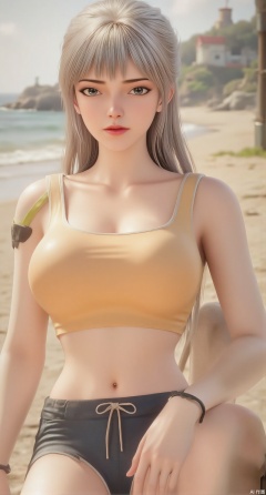 (masterpiece:1.2),best quality,extremely detailed wallpaper,perfect lighting1girl,solo,standing,looking at viewer,(cowboy_shot:1.3),,long hair,blurry background,depth of field,in summer,day,outdoors,nature,sea,(beach:1.4),(huge breasts:2.99),(full breasts:2.99),XcaiyunK,XlimuwanJCB,Xjiningshuang,XjiningshuangX2,XzixinK,XliushenWDDk,XtingerY,XbaiyuekuiXY,XqingyiXYK,COLORFUL CHAOS CRACKS AND DROPS,RAINBOW GLOW.