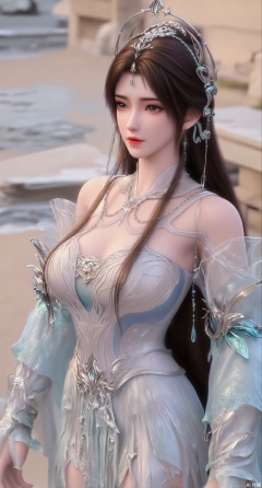 (masterpiece:1.2),best quality,extremely detailed wallpaper,perfect lighting1girl,solo,standing,looking at viewer,(cowboy_shot:1.3),,long hair,blurry background,depth of field,in summer,day,outdoors,nature,sea,(beach:1.4),(huge breasts:2.99),(full breasts:2.99),XcaiyunK,XlimuwanJCB,Xjiningshuang,XjiningshuangX2,XzixinK,XliushenWDDk,XtingerY,XbaiyuekuiXY,XqingyiXYK,COLORFUL CHAOS CRACKS AND DROPS,RAINBOW GLOW.