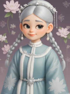 GFRW, A delicate Asian teenager with obsidian tresses in twin braids, azure scholar's robe with cloud motifs, silver hairpin shaped like a lotus, pearl teardrop earrings. Dreamy expression, muted peach-blossom wall backdrop, soft candlelit glow highlighting porcelain skin.