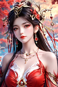 score_9,score_8_up,score_7_up,1girl, solo, long hair, brown hair, black hair, hair ornament, dress, bare shoulders, jewelry, earrings, necklace, red dress, masterpiece,best quality,official art,extremely detailed CG unity 8k wallpaper,upper body,looking at viewer,Random scene,