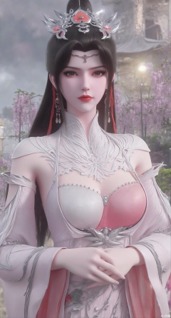 SFW,(masterpiece, top quality, best quality, official art, beautiful and aesthetic:1.2),Realistic,long dress,(Traditional Asian-inspired attire with a vibrant floral accessory and intricate hair ornament),realistic,hanfu photography,hanfu,1girl,fair_skin,glamor,very long hair,absurdres,incredibly absurdres,wallpaper,artbook,chinese_style_loft,turret,tower,handrail,plant,wisteria,spider_lily,face_focus,dynamic_angle,depth of field,looking_at_viewer,(huge breasts:2.99),(full breasts:2.99),(rose,rose sea:1.59),,XzilingXY3,XlimuwanJCY,XmoxianYK,Xfanlv