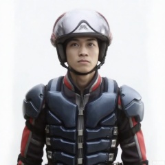 looking at viewer,XIO,helmet,collar,belt,military uniform,logo,uniform,jacket,helmet,fingerless gloves,gloves,boots,emblem,pants,bodysuit,belt pouch,armband,military,bulletproof vest,black gloves,belt,pants,black footwear,knee pads,police,tactical clothes