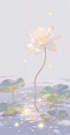 Single branch lotus in pure white space, background rendering ink and bleaching effect, golden thin lines outlined in the white space - blurred street lights in the gray-blue rain curtain, warm light forms geometric spots in the reflection of the puddle - translucent silk floating in front of the solid background, light and shadow flow between folds like liquid metal
