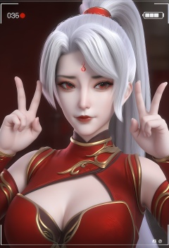 (score_9),light blush,body blush,<lora:焰羽女神-Apony-000009:0.83>,yanyu,solo,1girl,white hair,long hair,ponytail,hair rings,forehead mark,red eyes,red dress,high collar,detached sleeves,double v,<lora:perfect-eyes:0.8>,looking at viewer,front view,female,mature,(mature_female:1.1),glamor,border,viewfinder,flashback,OverallDetail,fair_skin,(white_skin),(Ivory_skin),<lora:e色温:0.5>,<lora:e肤色滑块:0.5>,<lora:SDS-XL泛光调节器_v1.0:0.1>,<lora:a修手:0.3>,<lora:detailed_notrigger:1>,