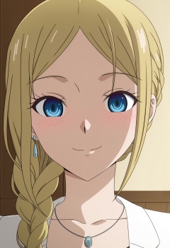 <lora:Ai HAYASAKA_illustrious-000018:1>,1girl,solo,Ai HAYASAKA,solo,jewelry,smile,looking at viewer,braid,anime coloring,earrings,necklace,closed mouth,blush,portrait,single braid,indoors,side braid,parody,parted bangs,anime screencap,