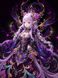 a woman, solo,, long hair, braid, pointy ears, wings, dress,