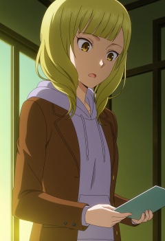 <lora:Onodera Rei_illustrious-000026:1>,Onodera Rei,hood,hoodie,solo,jacket,open mouth,upper body,looking down,holding,anime screencap,