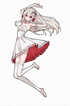 flat colors,newest,very awa,masterpiece,highres,absurdres,year 2024,year 2023,<lora:tsubura-wai:0.8>,<lora:USNR_STYLE_XL_lokr:0.3>,usnr,<lora:ponyv6_noobV1_2_adamW-000017:0.35>,<lora:UnifiedTheory:0.3>,solo,white background,simple background,barefoot,no bra,petite,skinny,toeless_legwear,white thighhighs,indoor,looking_at_viewer,panorama,full_shot,dashed_eyes,wedding_dress,jumping,double_v,happy,<lora:luciaCA-ill-Tanger:0.8>,Lucia \(Crimson Abyss\),1girl,long hair,red eyes,