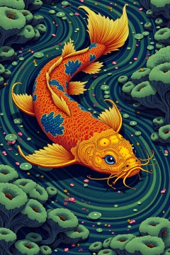 beijihui,a golden koi leaping out of a jade green pool,water droplets frozen mid-air,detailed traditional Chinese art style,