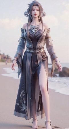 (masterpiece:1.2),best quality,3D animation,CG,absurdres,masterpiece,original,extremely detailed wallpaper,perfect lighting,(extremely detailed CG:1.2),1girl,solo,standing,(huge breasts:2.69),(full breasts:2.59),,looking at viewer,(cowboy_shot:1.1),long hair,high heels,blurry background,depth of field,motion blur,long dress,china_dress,chinese_style,bare shouders,crystal_earrings,headpiece,hair_tie,chest_jewel,gem,necklace,jewelry,in summer,day,outdoors,nature,sea,(rose,beach:1.49),(huge breasts:2.99),(full breasts:2.99),(very long legs,Diamond-studded high heels:1.5),XliumeiYK,XlishaoyingXK,XyunxiaoYK,XxiaobaiYK