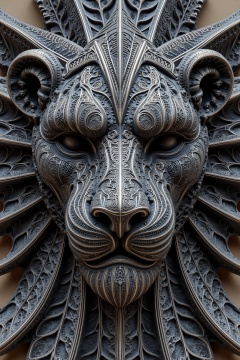 beijihui,a close-up view of a black sculpture of a lion's face,adorned with intricate carvings. The sculpture is set against a beige wall,its face adorned with a diamond pattern,adding a touch of sparkle to the composition. The lion's eyes,a nose,and a mouth are adorned with white lines,adding depth to the overall composition.,