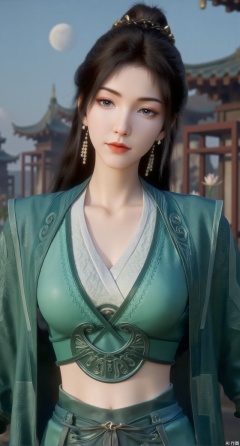 BREAK,blurry, solo focus, long hair, lips, daytime, lipstick, outdoors, standing,upper body,(huge breasts:2.99), (full breasts:2.99),background, solo, makeup,Xyunxiao,(Lotus,Water Lily,Blue sky,full moon:1.39),(Lotus pond,ancient Chinese architecture:1.39),Xmupeiling,XsongyuYK
