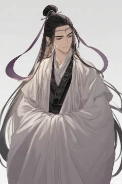 1boy,male focus,A man, hanfu,chinese clothes,single hair bun , long hair,white background,