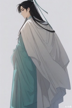 1boy,male focus,chinese clothes,hanfu,, simple background, white background,  wide sleeves,
