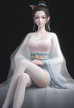 (score_9),light blush,body blush,<lora:应月茹-Apony:0.83>,yyr,1girl,solo,black hair,long hair,hair ornament,hair stick,hanfu,tassel earrings,ponytail,forehead mark,see-through,brown eyes,wide sleeves,belt,sash,glamor,skinny,collarbone,large breasts,see-through cleavage,see-through silhouette,see-through,skirt,shoes,sitting,(crossed legs),belt,white thighhighs,blue shoes,black background,OverallDetail,(white_skin),(Ivory_skin),<lora:perfect-eyes:0.8>,<lora:e色温:0.5>,<lora:Expressive_H:0.8>,<lora:e肤色滑块:0.5>,