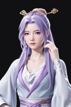 The clothing, hairstyle, and makeup are perfectly coordinated. The lavender elements in the hair, clothing, and eyeshadow create a unified and harmonious look, emphasizing the character's noble and elegant image.