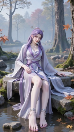 - Accessories: Wears a silver anklet on the ankle, with small diamonds and pendants on it. Toenails are painted with purple transparent glittery nail polish. Bare - footed.