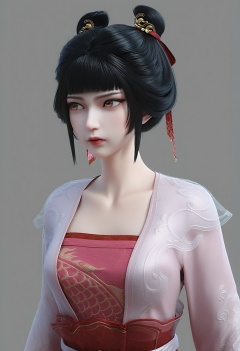(score_9),<lora:稚圭-Apony:0.86>,zigui,solo,1girl,black hair,hair ribbon,hair ornament,hair bun,bangs,see-through,hanfu,belt skirt,sash,<lora:perfect-eyes:0.8>,(front view:1.1),brown eyes,mature,glamor,collarbone,puffy breasts,pointy_breasts,OverallDetail,(white_skin),(Ivory_skin),simple background,grey background,ambient occlusion,((Subsurface Scattering)),<lora:e色温:0.5>,<lora:e肤色滑块:0.5>,<lora:SkinRealityOrg_ponyv6_loraplus:0.25>,<lora:Expressive_H:0.8>,<lora:detailed_notrigger:0.8>,