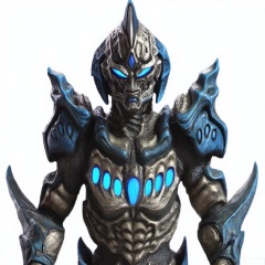 looking at viewer,,wings,gem,muscular,kaijuu,monster,mecha,robot,breastplate,armor,shoulder armor,gauntlets,cover,mask,helmet,armor,weapon,armor