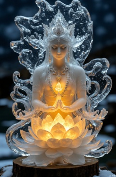 Transparent ice sculpture art,yellow light inside,