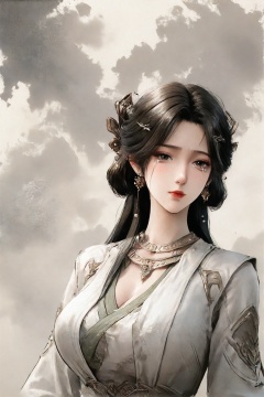 score_9,score_8_up,score_7_up,<lora:wy_hf_XL1.0>,ink_wash_style,ink_wash,brushstroke texture,paper grain,negative space,<lora:wy_meining_XL7.0:0.7>,1girl,black hair,long hair,solo,dress,blush,hair ornament,upper body,looking at viewer,breasts,crying,brown eyes,chinese_clothes,big breasts,cleavage,