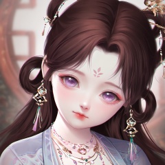 masterpiece,very aware,highres,absurdres,newest,best quality,loli,petite,high quality,chromatic_aberration,cinematic_angle,dutch angle,//,loli,1girl,solo,forehead mark,hair rings,jewelry,facial mark,purple eyes,earrings,hair ornament,blurry background,chinese clothes,blurry,looking at viewer,brown hair,portrait,necklace,chinese text,long hair,head tilt,closed mouth,pale skin,//,<lora:touxiang——【noob】hans:0.8>,