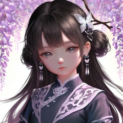 masterpiece,very aware,highres,absurdres,newest,best quality,loli,petite,high quality,chromatic_aberration,cinematic_angle,dutch angle,//,loli,1girl,solo,earrings,jewelry,long hair,black hair,hair ornament,closed mouth,bug,upper body,branch,portrait,wisteria,flower,hair bun,chinese clothes,dress,expressionless,butterfly,//,official art,depth of field,detailed light,blurry background,best shadow,shiny skin,cinematic lighting,ray tracing,amazing quality,very aesthetic,absurdres,beast quality,ultra detailed,newest,8K,HDR,//,<lora:touxiang——【noob】hans:0.8>,