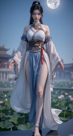 (masterpiece:1.2),best quality, (UE5.5,rendered with Unreal Engine 5,Unreal Engine 5,CG rendering),1girl, navel, solo, midriff, bare shoulders, hair ornament,(long hair),(High double ponytail:1.49), red lips, BREAK, (looking at viewer:1.39), chinese clothes,(long dress:1.36), (lace:1.28), BREAK,blurry, solo focus, long hair, lips, daytime, lipstick, outdoors, standing,upper body,(huge breasts:2.99), (full breasts:2.99),background, solo, makeup,Xyunxiao,(Lotus,Water Lily,Blue sky,full moon:1.39),(Lotus pond,ancient Chinese architecture:1.39),Xmupeiling,XsongyuYK,XqiyueFHK,XheguangzhefandiYK,XxiaobaiNZYK,XlimuwanJCBYK,XmeijiK,XzhouruK,XHhanfududou,XzhouruK2,XmeijiK2,XlinziyueK2,Xjinniang2,Xdunhuangfeitian,Xbaiyuekuishouban2