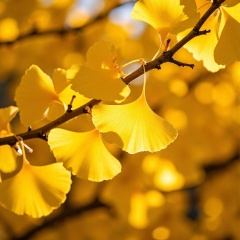 yinxingye,yinxingye,The golden ginkgo leaves shimmer softly in the sunlight, with fine golden edges outlined on the edges. The texture of the branches is clearly visible, and the background is blurred into a warm halo. The close-up shot perfectly presents the layers and vitality of autumn leaves.