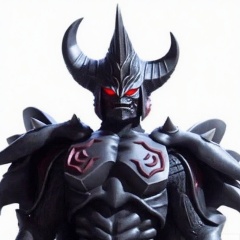 looking at viewer,horns,gloves,armor,spikes,weapon,full armor,helmet,mask,cover,gauntlets,shoulder armor,breastplate