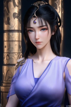 1girl, solo, long hair, looking at viewer, black_hair,hair ornament,  closed mouth,dress, upper body, realistic,