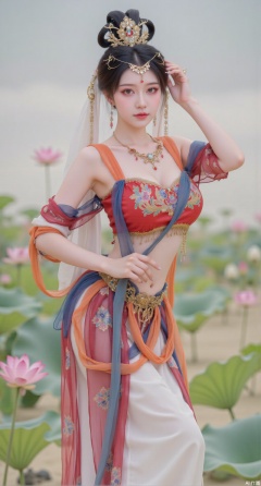 (masterpiece:1.2),best quality,(UE5.5,rendered with Unreal Engine 5,Unreal Engine 5,CG rendering:1.1),original,extremely detailed wallpaper,perfect lighting,1girl,solo,standing,(huge breasts:2.69),(full breasts:2.59),,looking at viewer,(cowboy_shot:1.1),long hair,high heels,blurry background,depth of field,motion blur,long dress,china_dress,chinese_style,bare shouders,crystal_earrings,headpiece,hair_tie,chest_jewel,gem,necklace,jewelry,in summer,day,outdoors,nature,sea,(rose,beach:1.49),(huge breasts:2.99),(full breasts:2.99),,(Background with lotus pond and pink lotus flowers:1.39),,Xmupeiling,XsongyuYK,XqiyueFHK,XheguangzhefandiYK,XxiaobaiNZYK,XlimuwanJCBYK,XmeijiK,XzhouruK,Xjinniang,Xliangpianqun,Xyinggou,Xfeitianwunv,XnangongxierK