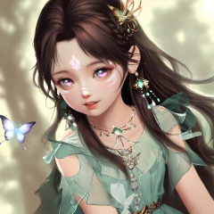 masterpiece,very aware,highres,absurdres,newest,best quality,loli,petite,high quality,chromatic_aberration,cinematic_angle,dutch angle,//,loli,1girl,forehead_mark,facial_mark,bug,butterfly,brown_hair,upper_body,solo,green_dress,long_hair,dress,hair_ornament,jewelry,teeth,smile,light_rays,earrings,from_side,looking_at_viewer,necklace,shoulder_cutout,braid,parted_lips,glowing_butterfly,light,clothing_cutout,//,official art,depth of field,detailed light,blurry background,best shadow,shiny skin,cinematic lighting,ray tracing,amazing quality,very aesthetic,absurdres,beast quality,ultra detailed,newest,8K,HDR,//,<lora:touxiang22——【noob】hans:1>,