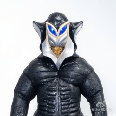 looking at viewer,breastplate,shoulder armor,gauntlets,cover,mask,helmet,full armor,weapon,spikes,armor,gloves,horns,mfls,helmet,mask,shoulder armor,armor,black border,tokusatsu,no humans,science fiction,silver head,hard mask,no smile,no eyes,no nose,blue rubber bodysuit with white line
