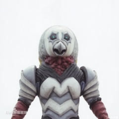 looking at viewer,breastplate,shoulder armor,gauntlets,cover,mask,helmet,full armor,weapon,spikes,armor,gloves,horns,mfls,helmet,mask,shoulder armor,armor,black border,tokusatsu,no humans,science fiction,silver head,hard mask,no smile,no eyes,no nose,blue rubber bodysuit with white line