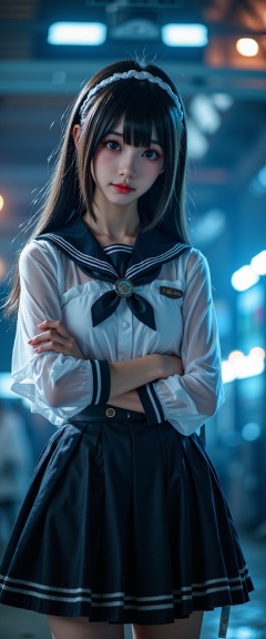 isuzu hana,girls und panzer,panzer iv,ooarai school uniform,ooarai military uniform,anglerfish,****,black eyes,white hairband,,(((photo raw)),),from front,Alternate Reality, Stylish Fashion, Creative Art, Unique Aesthetic,Alternative Style,reflective light,glowing,energy, reflection ,wearing see-through Hanfu,