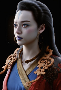 (score_9),((upper body)),<lora:亢金龙-Apony:0.85>,kangrixingjun,solo,black hair,long hair,hoop earrings,makeup,forehead mark,blue lips,blue eyeshadow,branch,open choker,chinese clothes,red robe,1girl,collarbone,(front view),eye-contact,<lora:a修手:0.35>,light rays,light particles,softened light,simple background,night,starry sky,stars,the milky way,OverallDetail,(Ivory_skin),((colored skin)),deep_skin,<lora:perfect-eyes:0.8>,<lora:Expressive_H:0.8>,<lora:SkinRealityOrg_ponyv6_loraplus:0.25>,real skin,realistic,<lora:detailed_notrigger:1>,<lora:皮肤凹痕:1.5>,