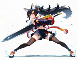 masterpiece, best_quality, very_aesthetic, highres, absurdres, ultra detailed,   holding weapon, fighting stance, holding  buster sword,huge weapon<lora:negXL:0.5> <lora:buster_sword_IL:1>  hololive, ookami mio, hololive