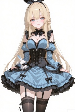The image is an illustration of a young girl with long blonde hair and blue eyes