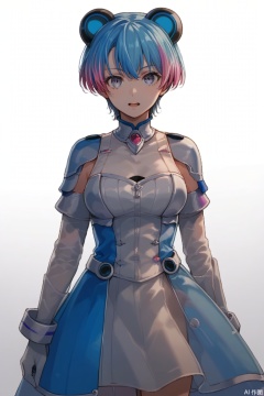 looking at viewer,Minetsuki Ritsu,breasts,short hair,open mouth,medium breasts,blue hair,multicolored hair