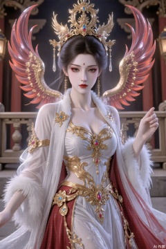 Cultivation style, a girl standing in the palace, sexy pose, elegant pose, colorful clothes, feathered clothes, phoenix crown and robe, .em,gd,xz,cy,yyzs,mn,sw,fgxp